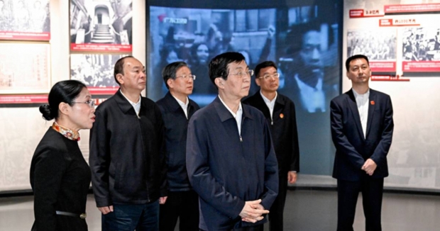 在參觀東江縱隊紀念館時,王滬寧強調要弘揚偉大抗戰精神,講好抗戰故事,引導廣大群眾特別是青少年傳承紅色基因、賡續紅色血脈,堅定聽黨話、跟黨走。