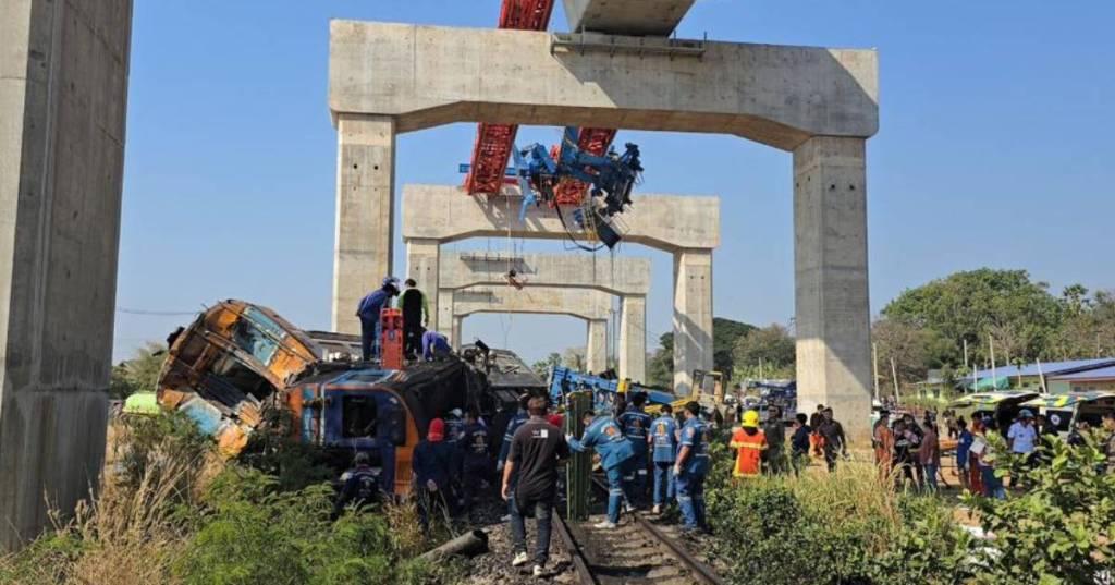 事發於當地時間上午約9時05分,一列從曼谷開往烏汶府的客運列車在行駛途中,被附近高架高鐵地盤倒塌的吊臂直接擊中,導致車廂脫軌並起火,救援人員趕到現場搶救,以液壓切割工具從殘骸中救出被困乘客,傷者已送往附近醫院治理。